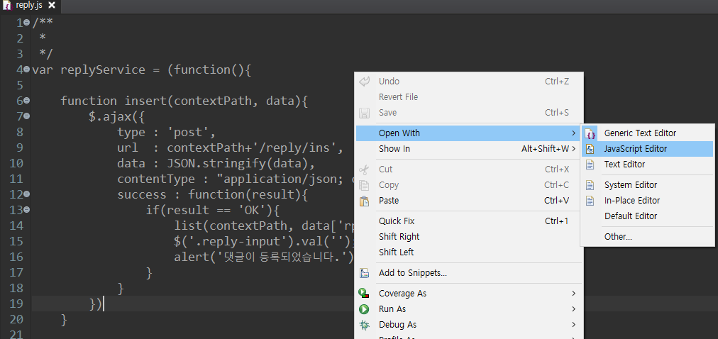 JavaScript Editor를 디폴트에디터로 설정해보자.