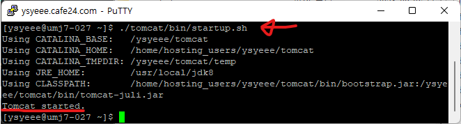 ./tomcat/bin/startup.sh 를 입력하면 톰캣이 실행된다.