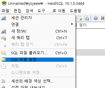 그리고 워크벤치로 로컬에서 관리하던 sql파일들을 HeidiSQL프로그램으로 옮겨준다.