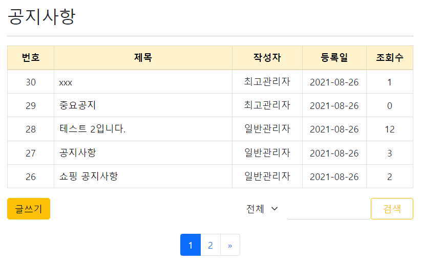 DB를 이용한 페이지도 에러없이 잘 구동되는 모습.