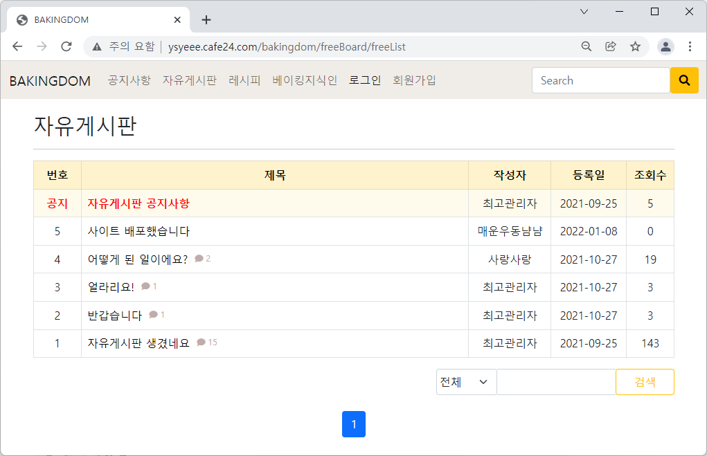 도메인주소로 접속해보면! (배포파일명을 ROOT.war로 설정한 경우엔 아이디.cafe24.com 만 입력하여 접속한다.)