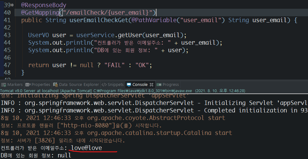 이제 바뀐 설정들이 많으니 톰캣 서버를 종료했다가 다시 재실행을 하면 된다.