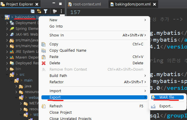 프로젝트명 우클릭 - Export - WAR file